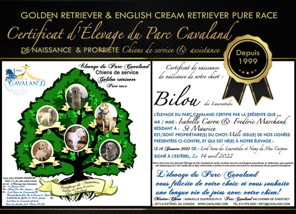 (service dog) ou de compagnie. Aucune reproduction ni revente de nos chiens n'est autorisée.